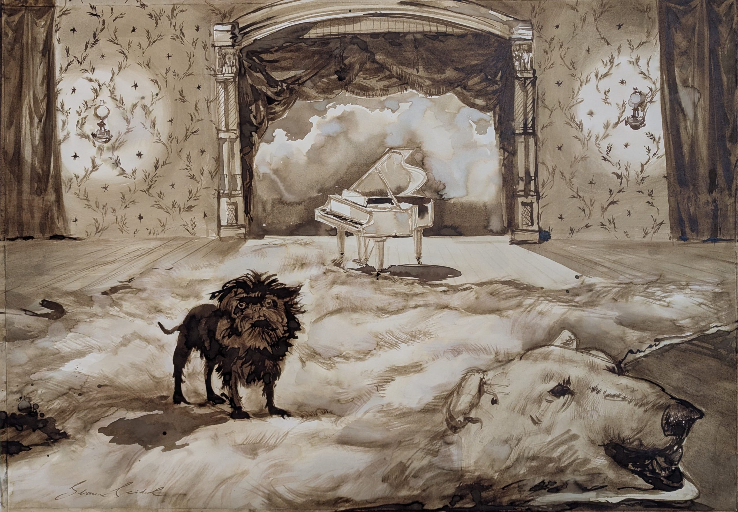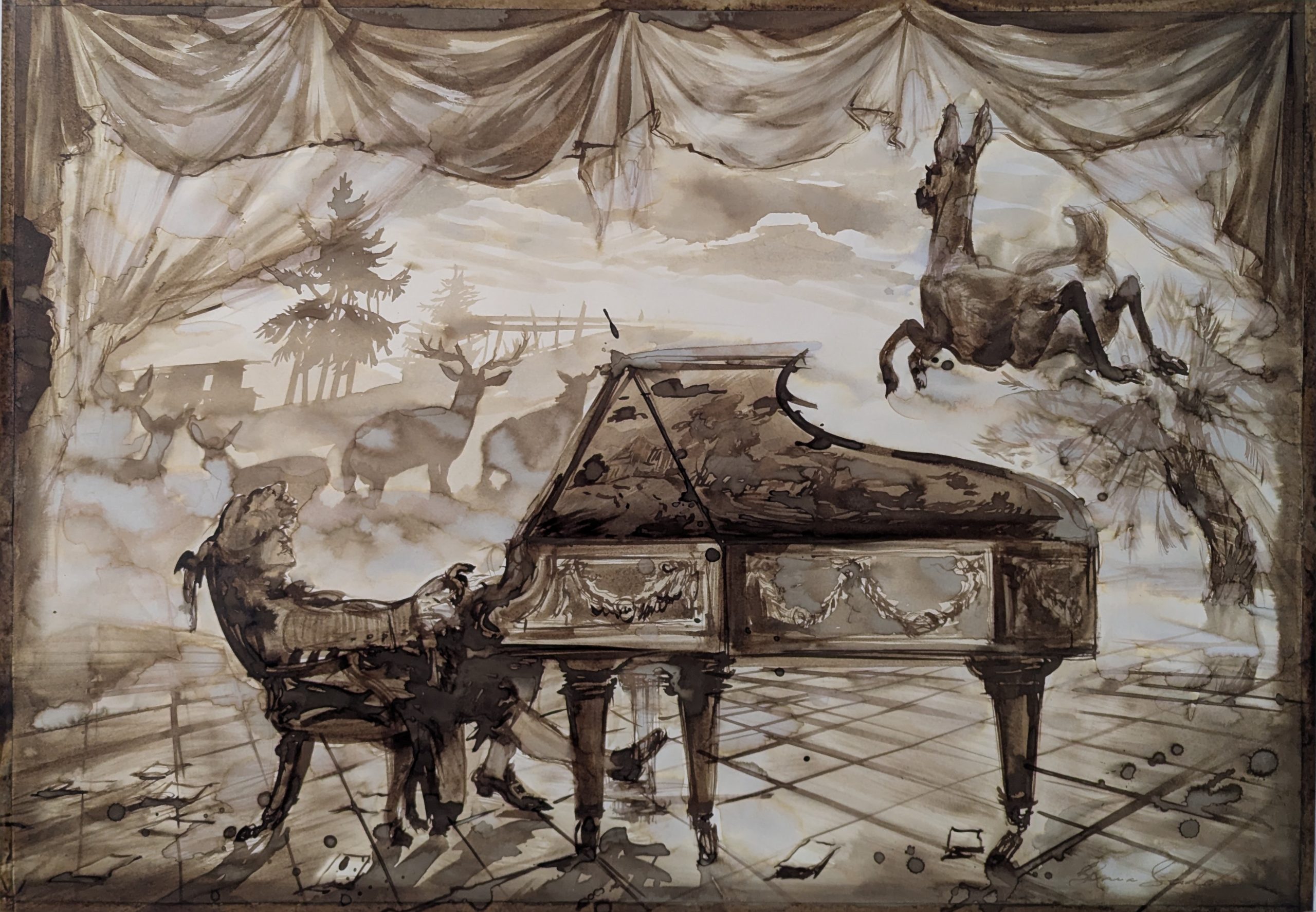 Nocturne 70x100cm Sepia Tusche auf Papier 2020